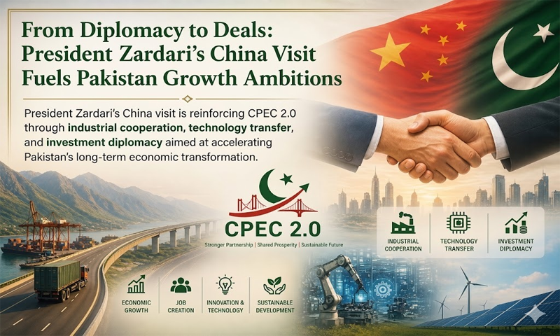 صدر مملکت آصف علی زرداری کا 25 اپریل سے یکم مئی 2026 تک جاری سرکاری دورہ چین پاکستان اور چین کے درمیان معاشی و اسٹریٹجک تعاون کو مزید مستحکم بنانے کی اہم کوشش قرار دیا جا رہا ہے۔