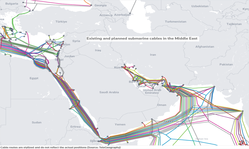 رپورٹ کے مطابق خلیجی ممالک جیسے متحدہ عرب امارات اور سعودی عرب نے حالیہ برسوں میں مصنوعی ذہانت اور ڈیجیٹل انفراسٹرکچر میں اربوں ڈالر کی سرمایہ کاری کی ہے جس کا انحصار بھی انہی زیر سمندر کیبلز پر ہے۔