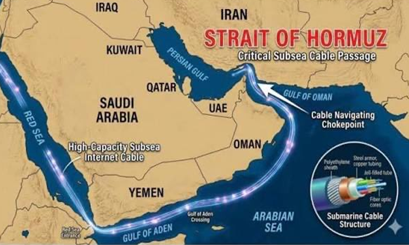 رائٹرز کی رپورٹ کے مطابق یہ تنگ آبی گزرگاہ پہلے ہی عالمی تیل کی ترسیل کے لیے ایک اہم چوک پوائنٹ سمجھی جاتی ہے لیکن اس کے ساتھ ساتھ یہ ڈیجیٹل دنیا کے لیے بھی نہایت اہم ہے جہاں متعدد سب میرین فائبر آپٹک کیبلز سمندر کی تہہ میں بچھائی گئی ہیں۔ یہ کیبلز جنوبی ایشیا اور جنوب مشرقی ایشیا کو خلیجی ممالک کے ذریعے یورپ اور مصر سے جوڑتی ہیں۔