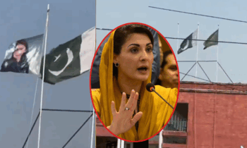 تنقید کے بعد مریم نواز کی تصویر والا جھنڈا اتار دیا گیا، ’عوامی طاقت زندہ باد‘