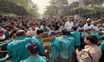 ڈھاکہ میں اپوزیشن طلبا تنظیم کا الیکشن کمیشن کے سامنے پرامن دھرنا
