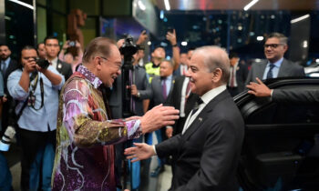 وزیراعظم شہباز شریف کا ملائیشیا پہنچنے پُر پرتپاک استقبال، سڑکوں پر سبز ہلالی پرچموں کی بہار